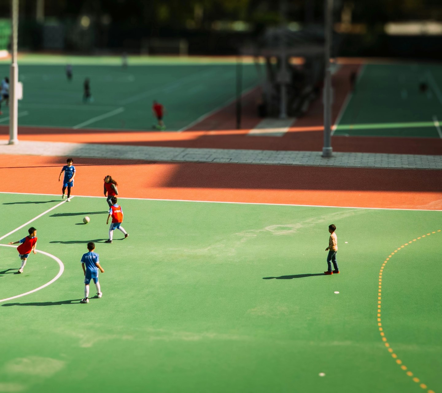 Matcher spelas i korta perioder med regelbundna pauser för vila och lek.